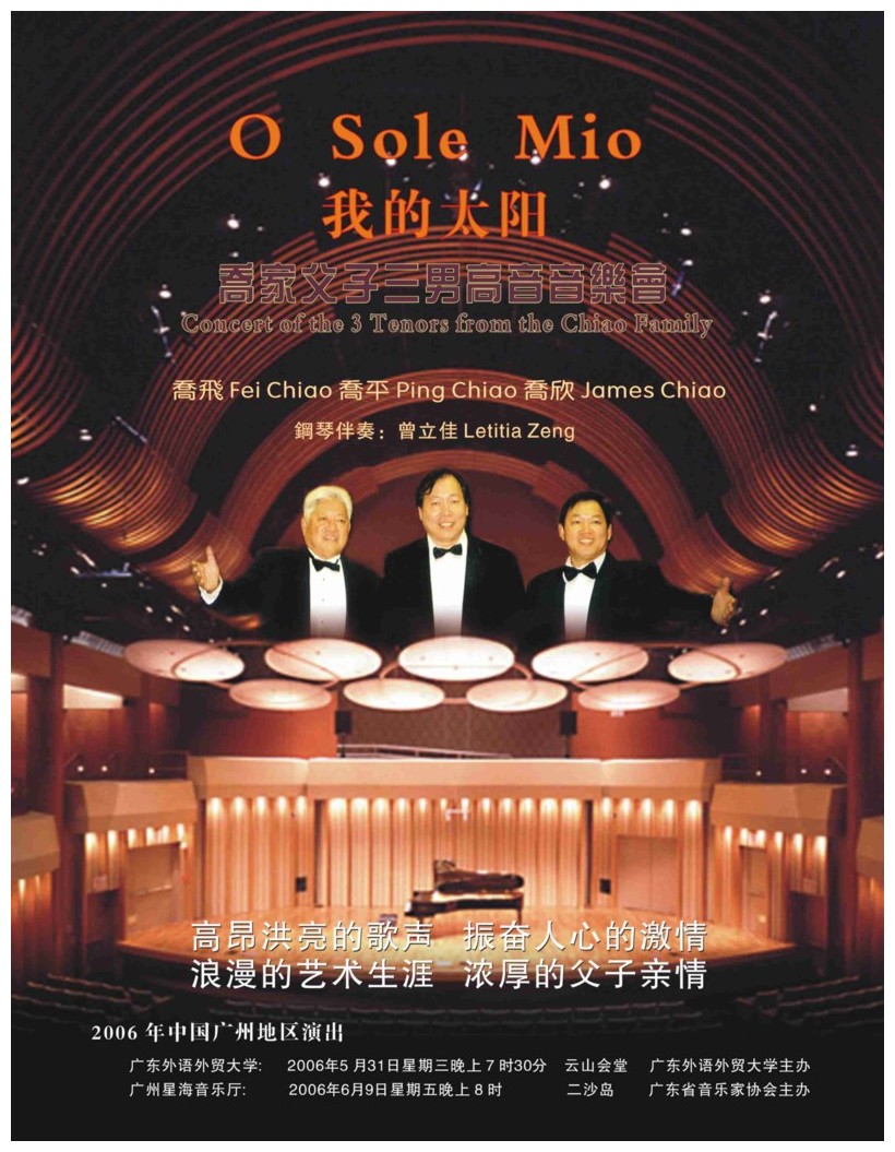 Have you heard of the 3 Tenors from the Chiao's Family? They are Chiao Xin and his father and brother. They have been very active and quite popular in the Los Angeles area, performing in many local events and celebrations.