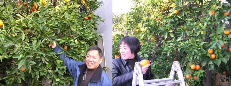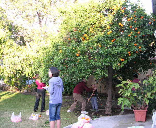 Fruit-Harvest in Los Angeles We GW alumni living in Los Angeles were honored to be invited by Tang He(77) in March 2006 to view and pick up fruit at his backyard garden. All of us returned home loaded with bags of sweet and juicy orange. As usual, we had authentic Chinese food, group photo taken, chatting and laughters. Thanks, Tang He. Here are some snapshots: